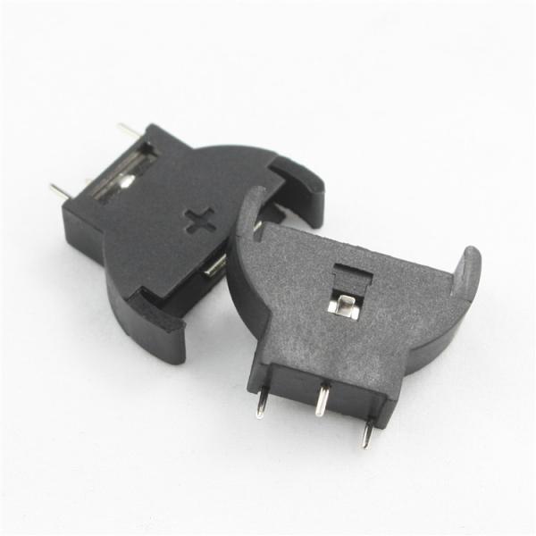PCB mounting holder for lithium coin cell CR2032,2 pins positive ,1 pin negative ,Housing PBT Glass Fiber UL94 V-0,Contact :Phosphor Bronze.